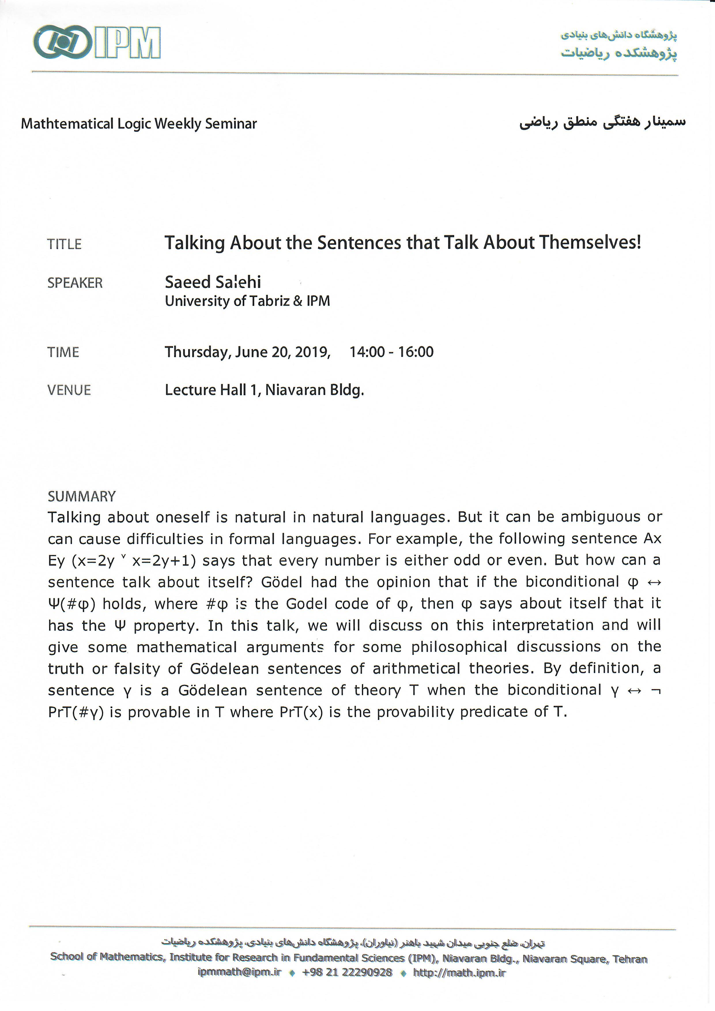 - Saeed Salehi (2020), On the Diagonal Lemma of Gödel and Carnap,