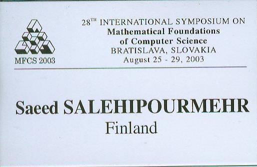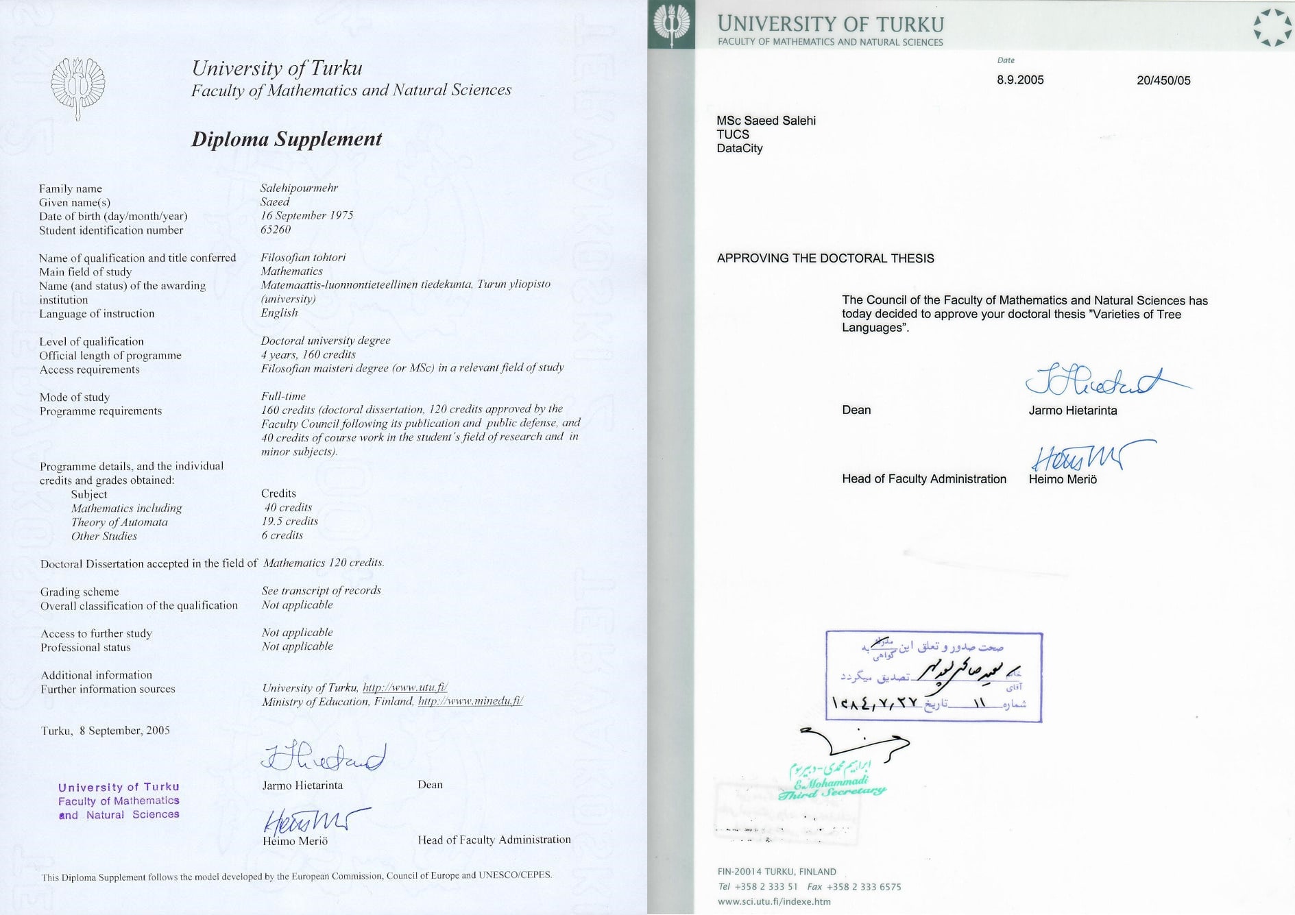 Theoretical Computer Science, from University of Turku (UTU), Turku, Finland (2005), under the supervision of (the late)