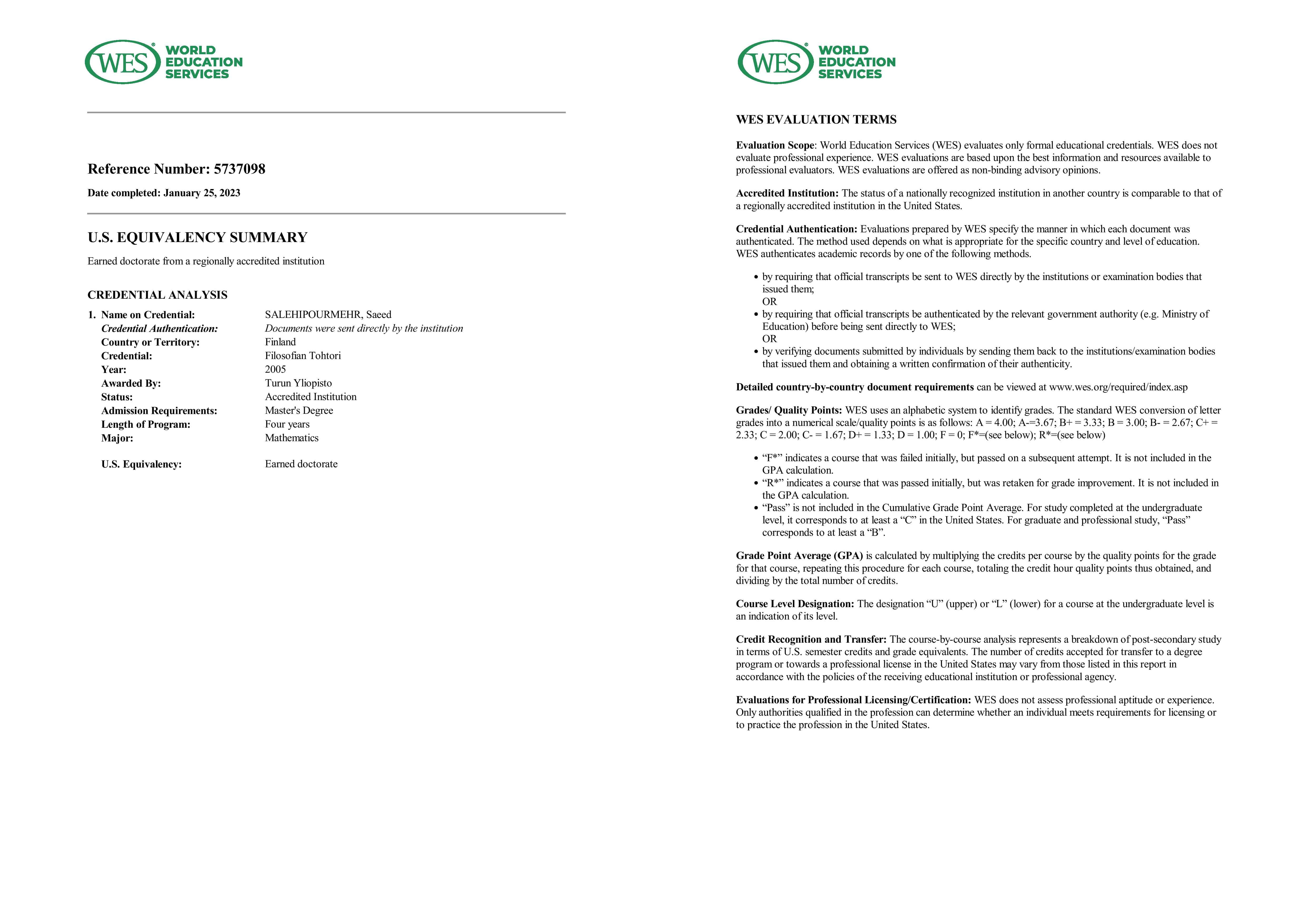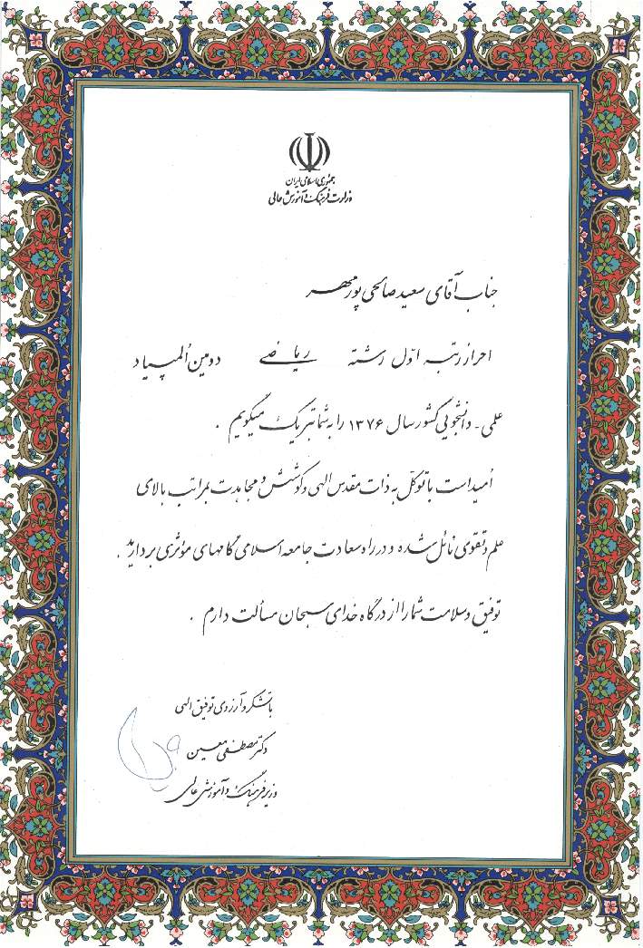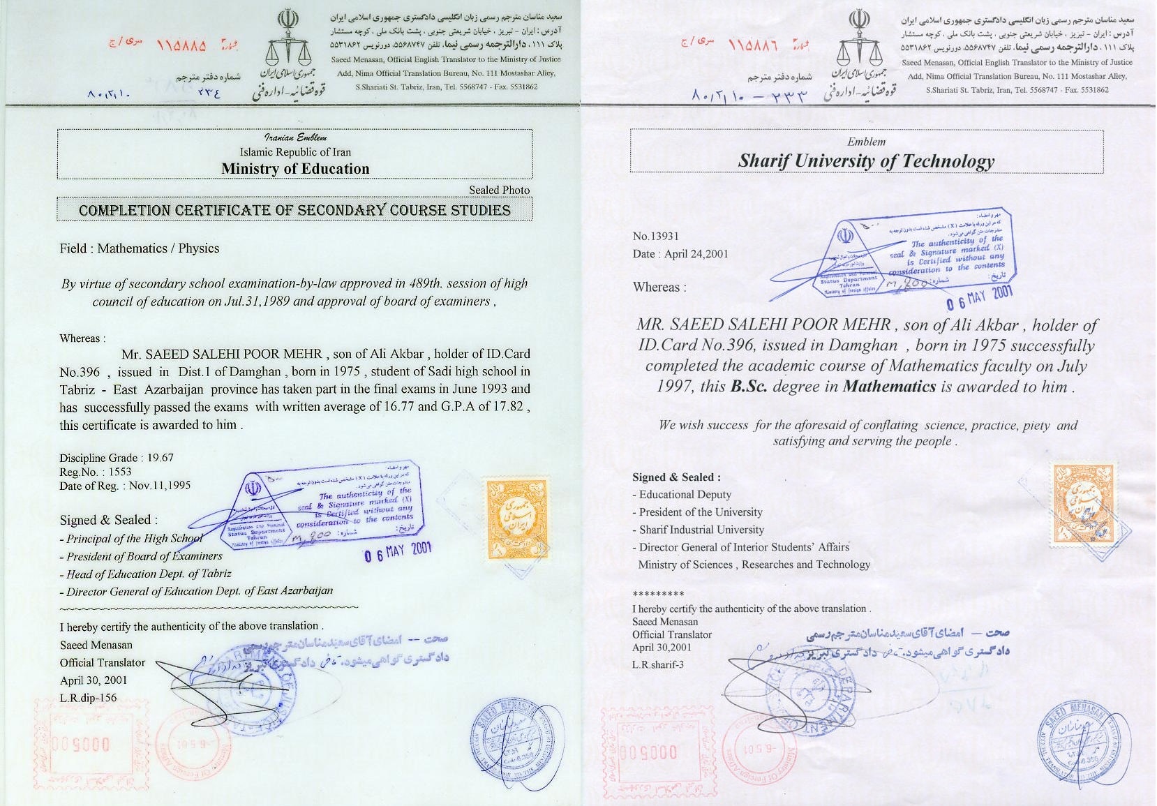 - BSc in Pure Mathematics, from Sharif University of Technology, Tehran, Iran (1997).