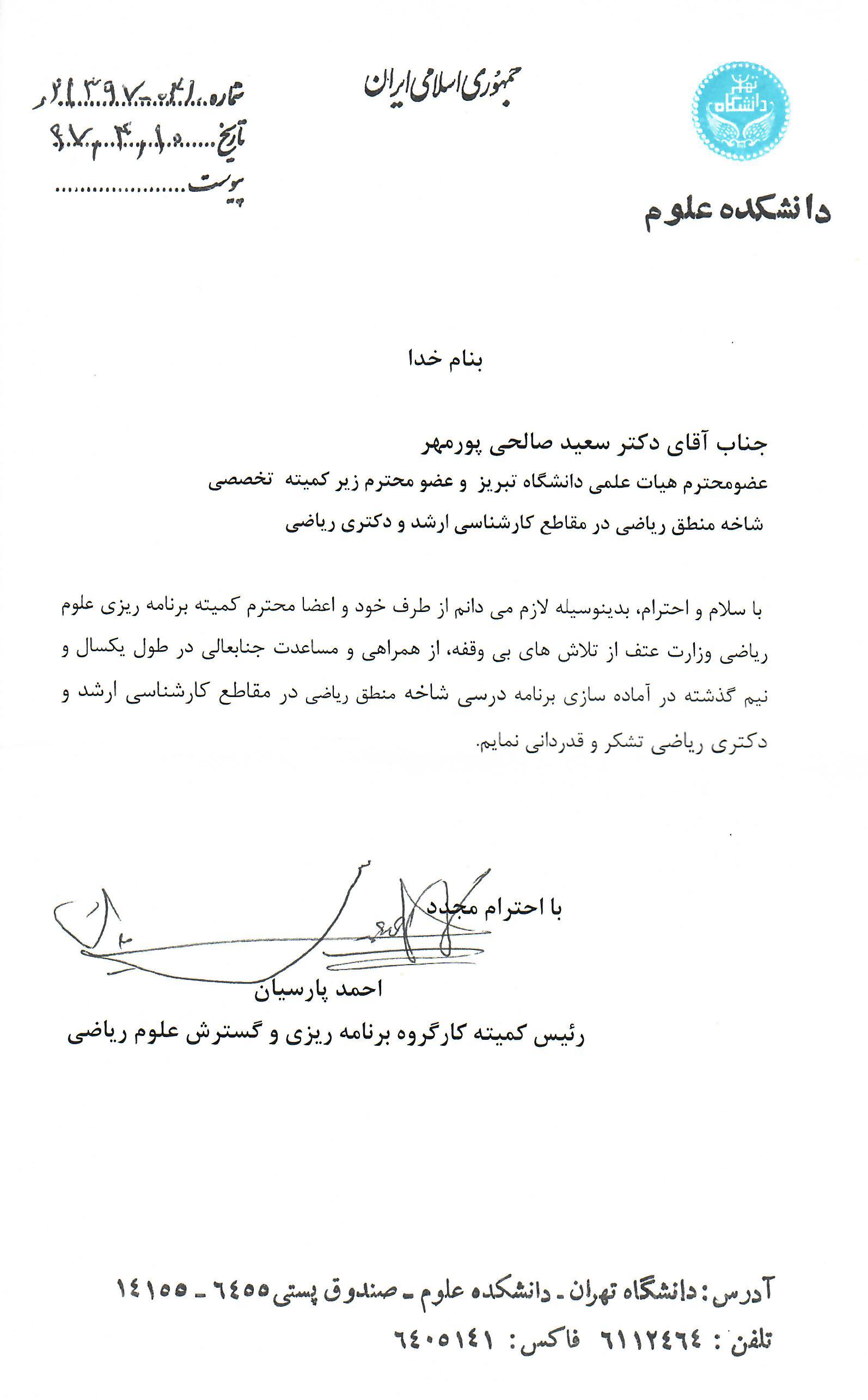 - University of Tabriz (since 2007). Associate Professor of Mathematics (since 2013).
