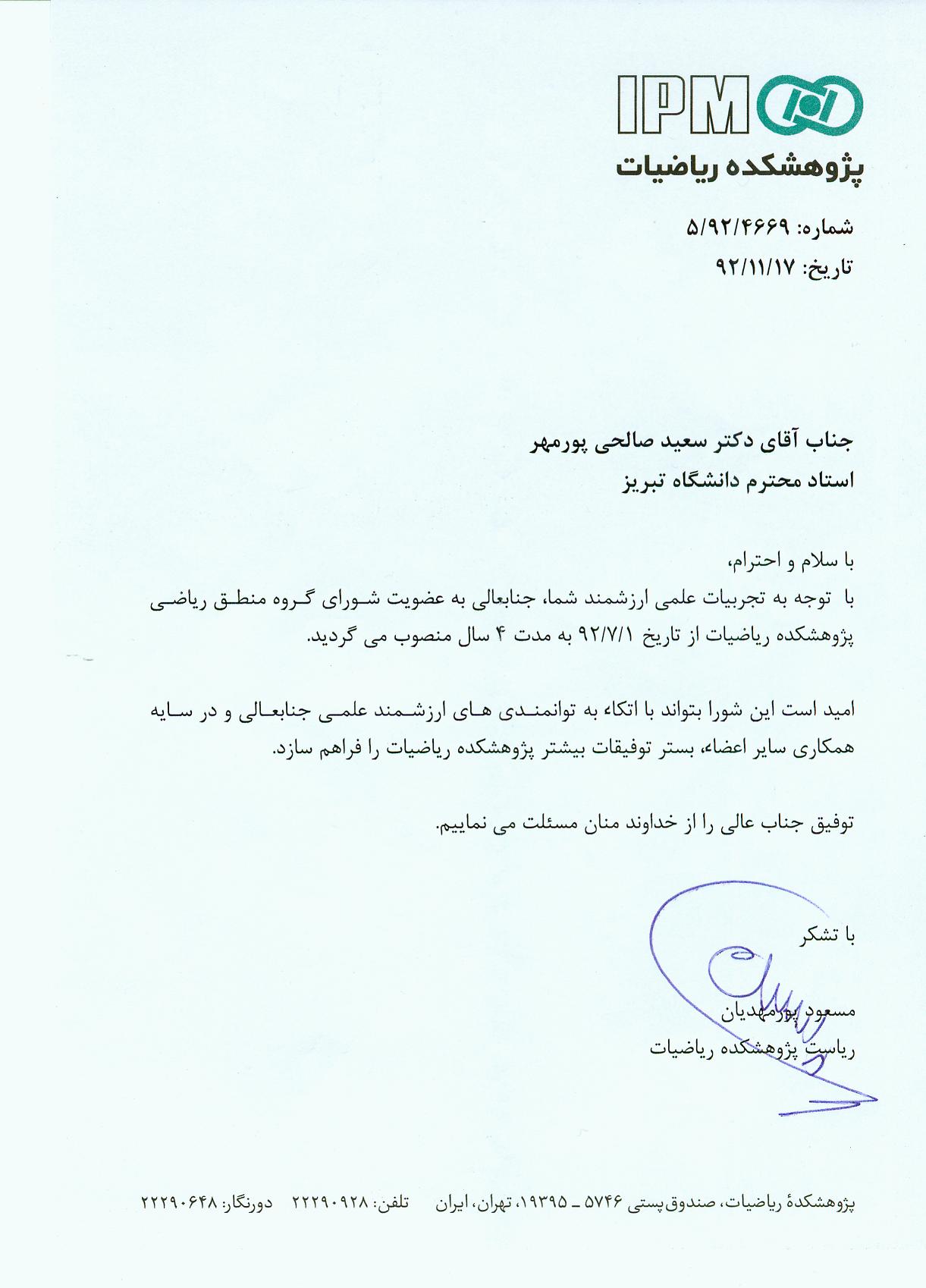 in which he had written, “A Farsi translation of the first edition was published in Tehran by Markaz Nashr Daneshgahi. I recently received a copy, courtesy of Dr. Saeed Salehi, of the University of Tabriz.” God Bless Him.